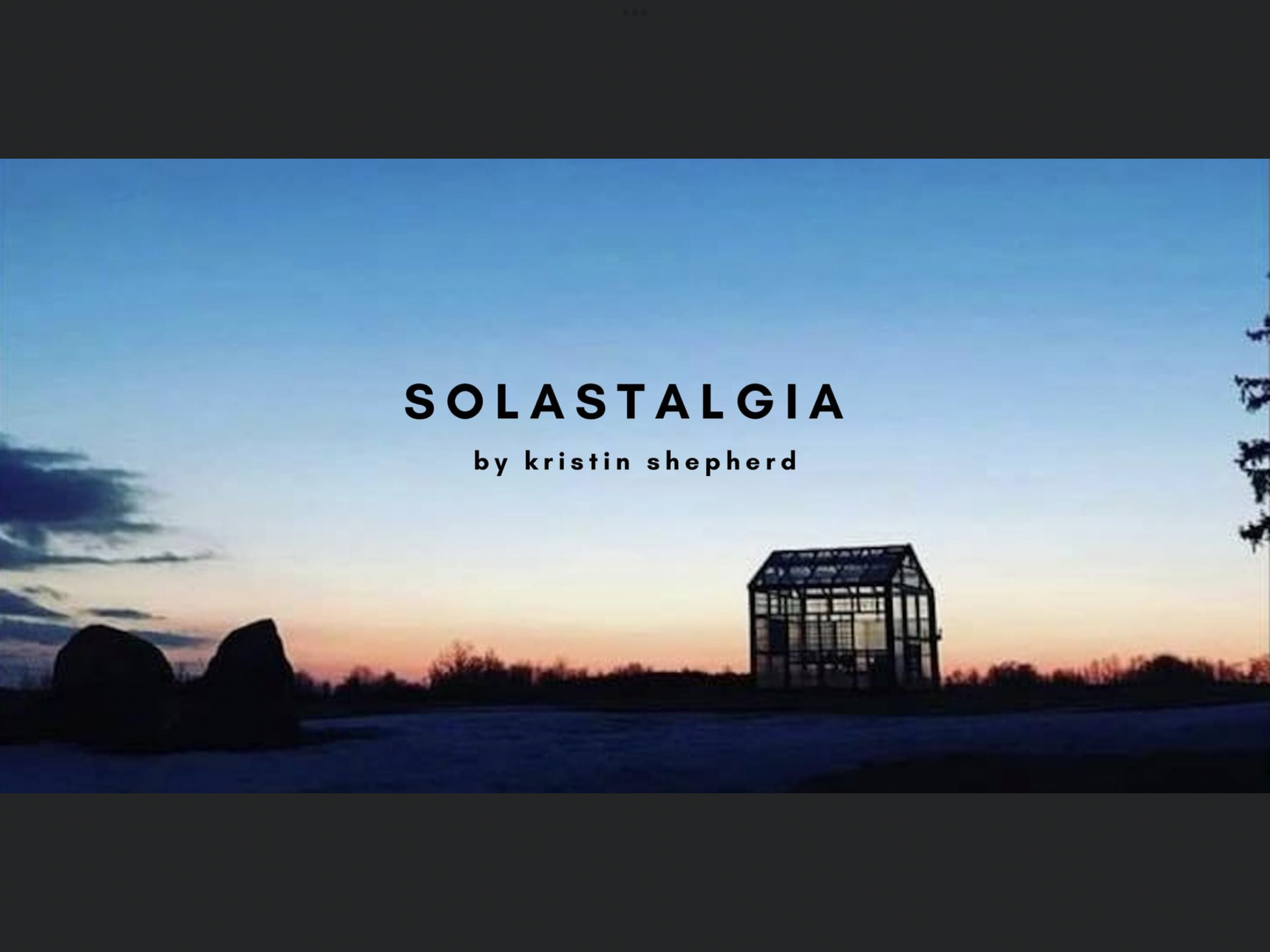 I’ve been acting for thirty years in theatre. My favourite last project was Solastalgia, a play I wrote and performed with Sonderlust during and after COVID, including on stage at RCA Theatre in St. John’s.